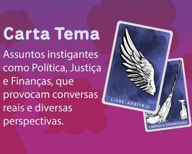 Cada rodada do jogo traz uma carta-tema sorteada.